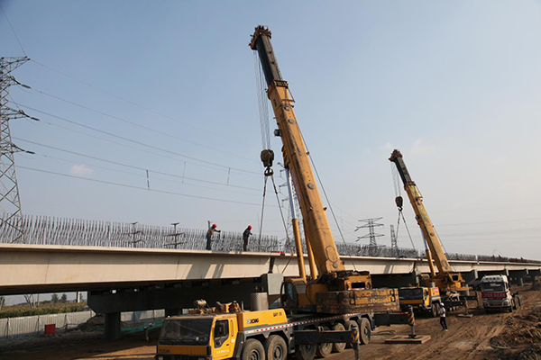 S224大沂線彌河橋位于濱海經(jīng)濟(jì)開發(fā)區(qū)內(nèi),地質(zhì)狀況以粉砂、亞粘土等為主。按照集散一級(jí)公路要求橋梁寬度為21m,上部結(jié)構(gòu)采用30m預(yù)應(yīng)力混凝土小箱梁,橋跨組合為93×30m,前進(jìn)方向右交角90°,中心樁號(hào)K5+427,下部結(jié)構(gòu)采用肋板臺(tái)、柱式墩,鉆孔灌注樁基礎(chǔ),按摩擦樁設(shè)計(jì),橋梁全長2797m。全橋采用三孔一聯(lián),共31聯(lián)。聯(lián)端均采用D80型伸縮縫。聯(lián)端支座采用GYZF4350x65型四氟滑板式橡膠支座,其余支座采用GYZ400x84型板式橡膠支座。鋪裝層厚度為4cmSMA-13瀝青瑪蹄脂碎石混合料+6cmAC-20SBS改性瀝青混合料+10cmC50水泥混凝土現(xiàn)澆層。工程總造價(jià)2.516億元,由山東宏昌路橋集團(tuán)有限公司承建。